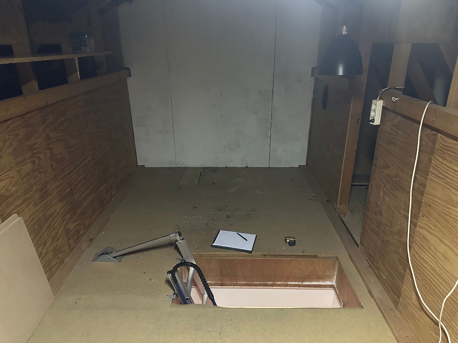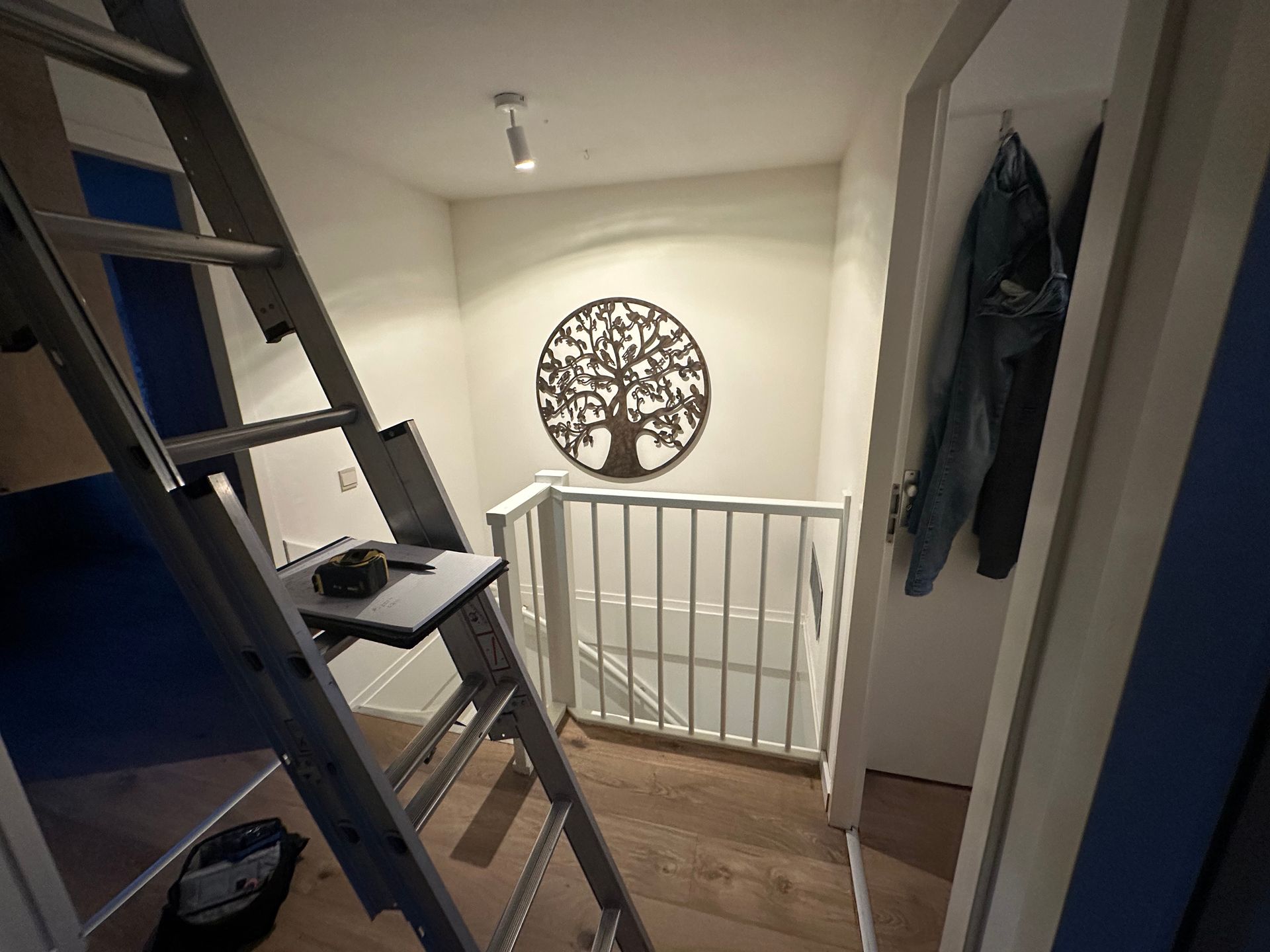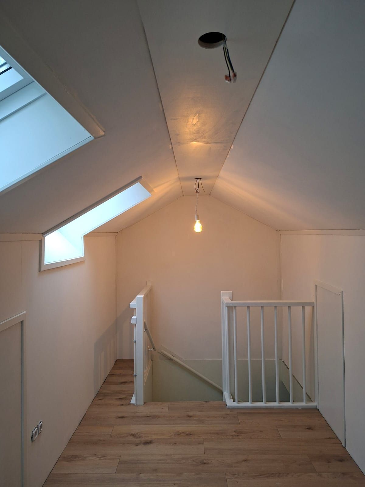 Voor deze woning hebben wij de bestaande vlizotrap vervangen door een veilige en comfortabele vaste zoldertrap. We hebben het trapgat vakkundig gerealiseerd, de oude trap verwijderd en afgevoerd, en het oorspronkelijke gat netjes afgesloten aan zowel de boven- als onderzijde. Tot slot is het nieuwe trapgat strak rondom afgetimmerd met wit gegronde MDF-platen.
