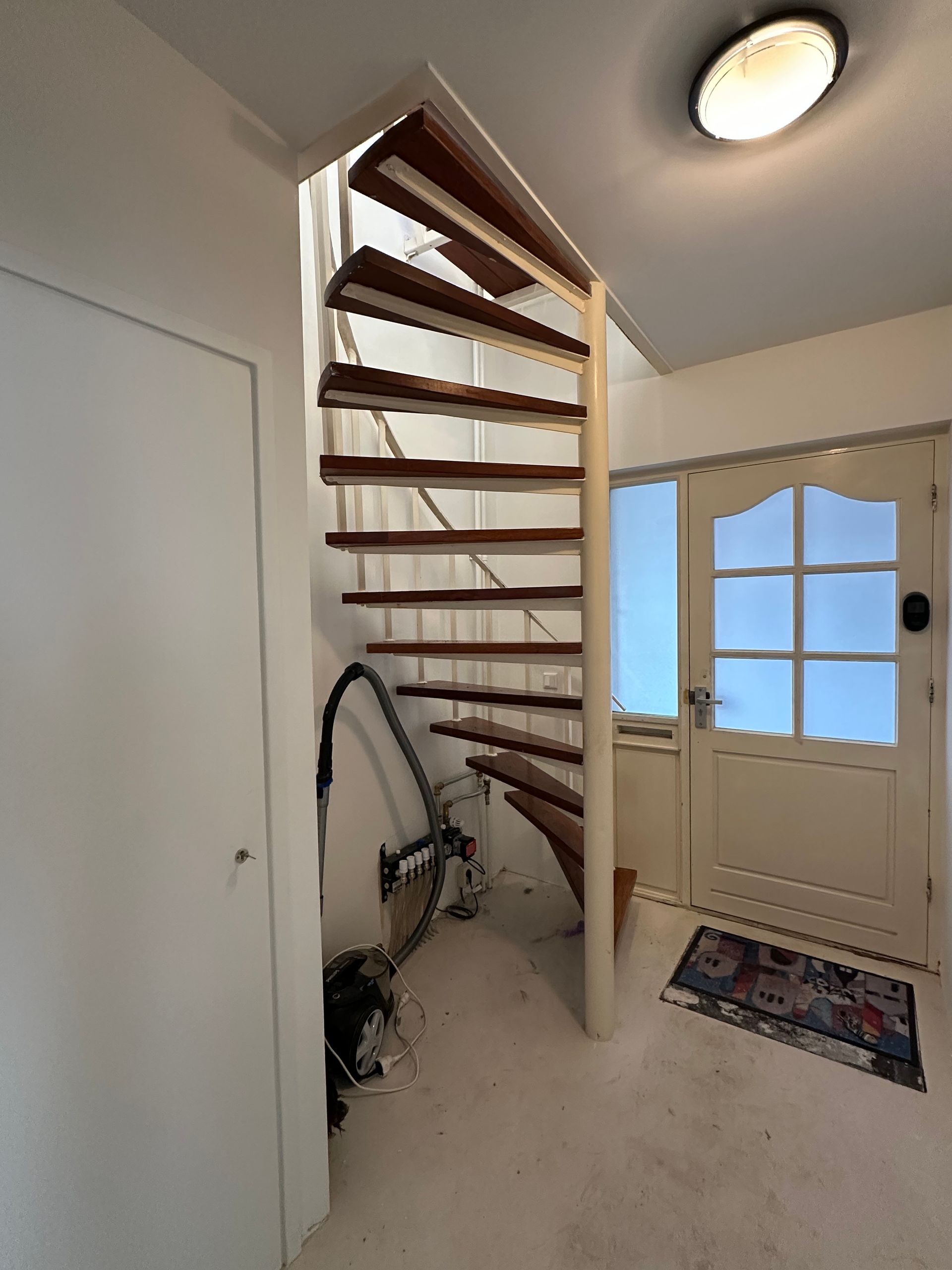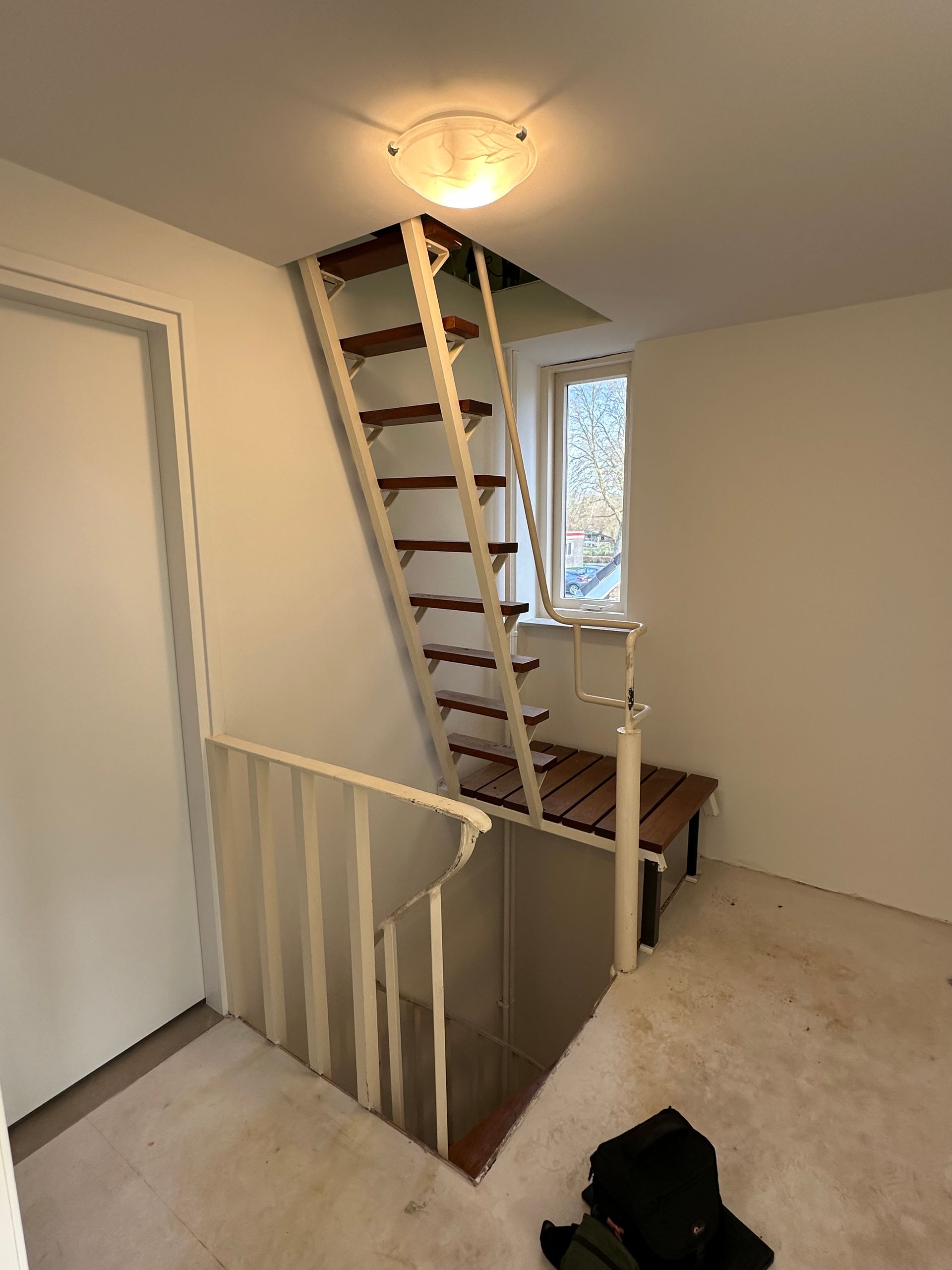 Dat hebben wij van A tot Z verzorgd, van het verwijderen van de oude trappen tot het plaatsen van de nieuwe. Er is gekozen voor een hardhouten Rubberwood trap met een Monocoat eindbehandeling, waardoor de trap direct klaar is voor gebruik. Zowel de verdiepings- als zoldertrap zijn afgewerkt met een rechthoekige leuning in dezelfde warme kleur, voor een stijlvol en geheel passend resultaat.